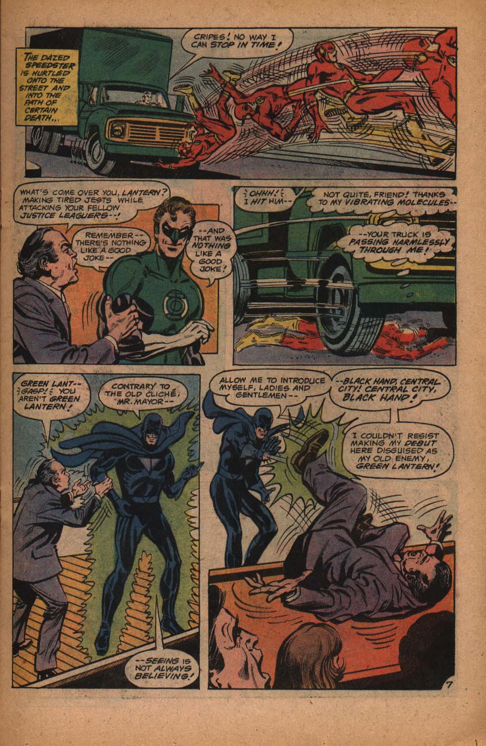 Black Hand also had a tendency to break the fourth wall on occasion, another trait that wasn’t nearly so common in 1977. Here, after an introduction showing Green Lantern preventing a meteorite from striking Coast City an an artist proclaiming the remnants of the meteorite a timeless work of art, Hand uses his power-light gadget to draw out the residual power beam energy in the rock sculpture before he takes his leave of Coast City in favor of the Flash’s home, Central City.
