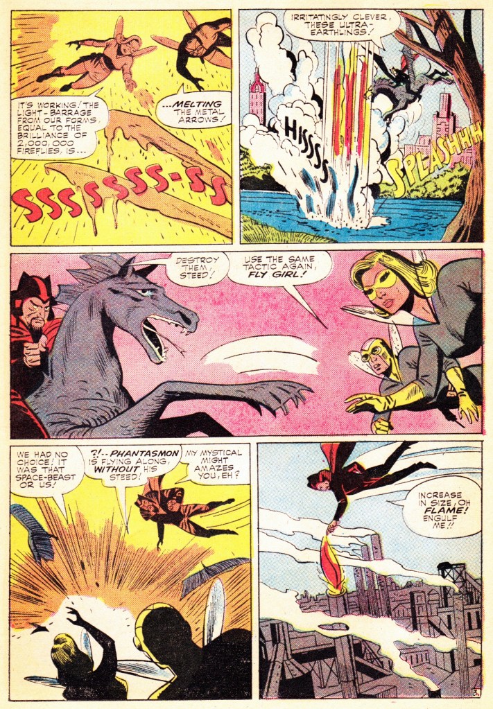 As you can see, this story begins virtually plotlessly, with Fly Man and Fly Girl plunged immediately into battle with the amazing Phantasmon for pretty much no reason whatsoever other than that he is a villain. Fly Man and Fly Girl themselves could hardly be more wooden and lacking in individual personality.