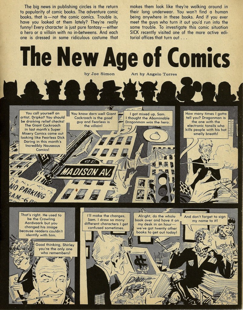 I’m not certain who this piece was aimed at, apart from Simon himself, and of course Lee and Martin Goodman. I can’t imagine the average reader of SICK would have enough inside knowledge of the comic book filed to understand half the references.