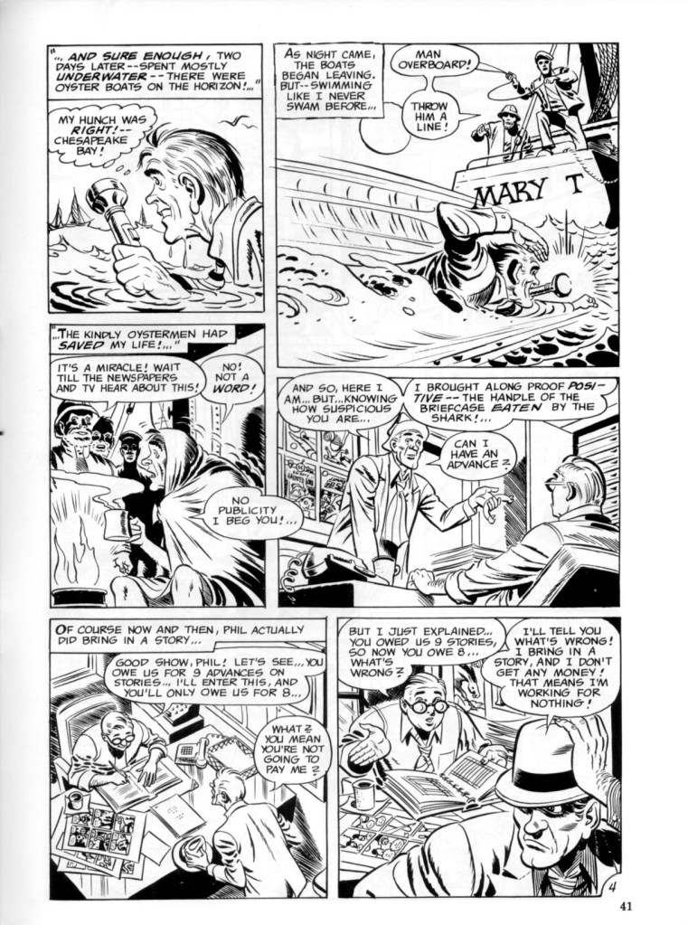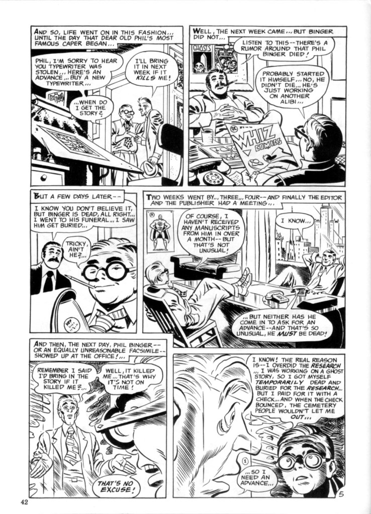 Interestingly enough, I think I first read the Phil Binger story at around the same time that I read the “The Success Story”, which was originally published in Warren’s Eerie #13 (though I first read it in the Les Daniels/Mad Peck Comix: A History of the Comic Book In America thanks to my local library). Here it is, though I suspect you’re familiar with it: