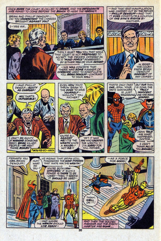After a bit of testimony from momentary guest-stars Professor X and Moondragon, the judges reach their verdict, finding Brian innocent of all charges against him, but his father Phillip guilty. As he’s led away, Phillip rails against the unjustness of this conviction. And so this four-part saga comes to a close, not with a bang but with a trial. And as the heroes separate, it’s suggested that Brian DeWolff might continue to use the powers of the Wraith (which he still possesses) as a force for good. Nothing much ever came of this idea, but as I mentioned earlier, Jean DeWolff did go on to become a recurring figure in the Spider-Man titles whenever an NYPD officer was needed in a story. There’s also a weird coda in which one of the judges displays telekinetic powers, revealing that they had no choice but to accept the account of Phillip DeWolff’s own similar abilities as a result. It’s an odd beat–I don’t know if these were established characters or something new, but it’s a strange note to go out on.