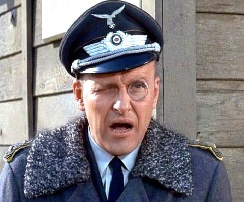 The particular story reprinted in this issue featured the return of Fury’s regular enemy Baron Wolfgang Von Strucker, a Prussian military officer fighting on the Axis side who led his own team of soldiers in parallel to the Howling Commandos. I must admit, I often had a tough time taking Strucker seriously in these days, as to my eye he resembled nothing so closely as Werner Klemperer’s delightful portrayal of Colonel Klink, the ineffectual Commandant of Stalag 13 in HOGAN’S HEROES, then in syndication.