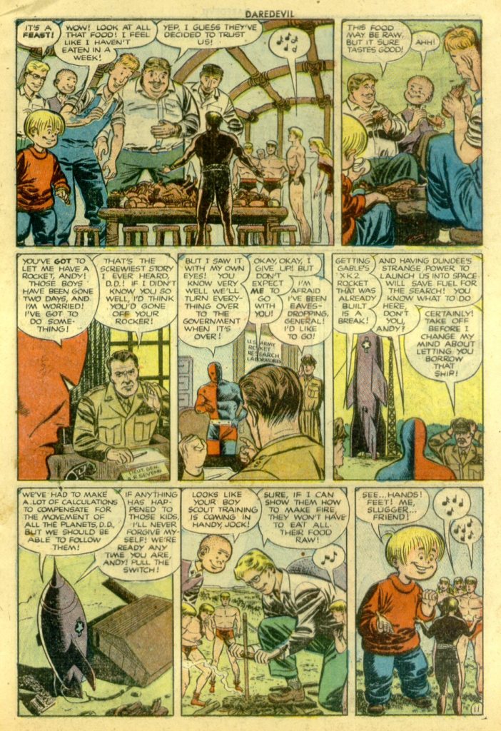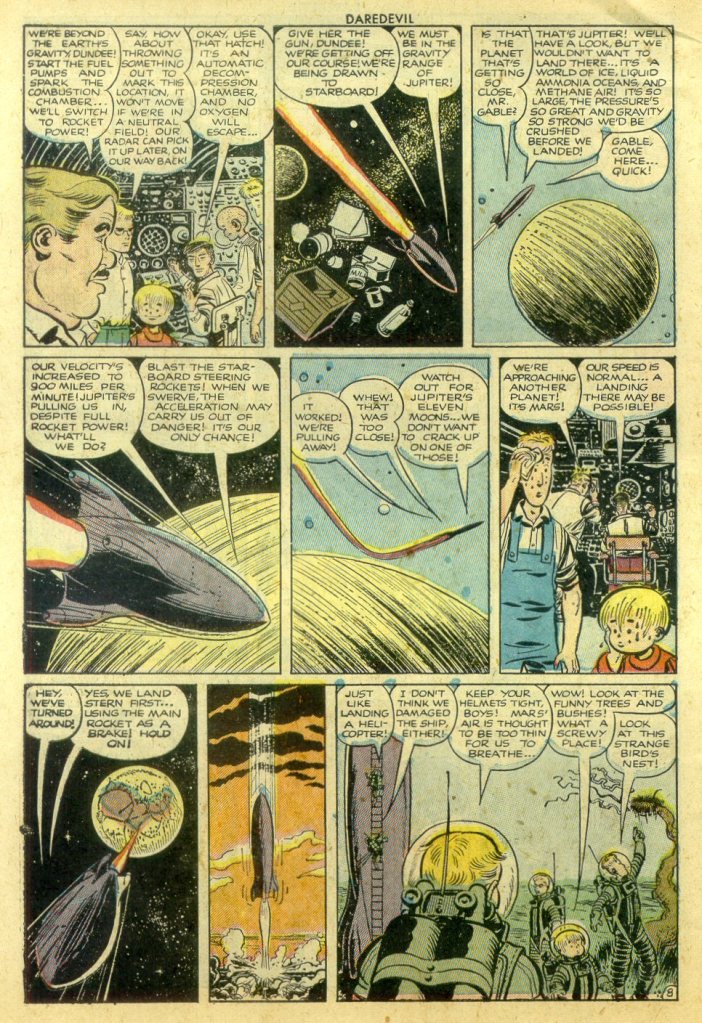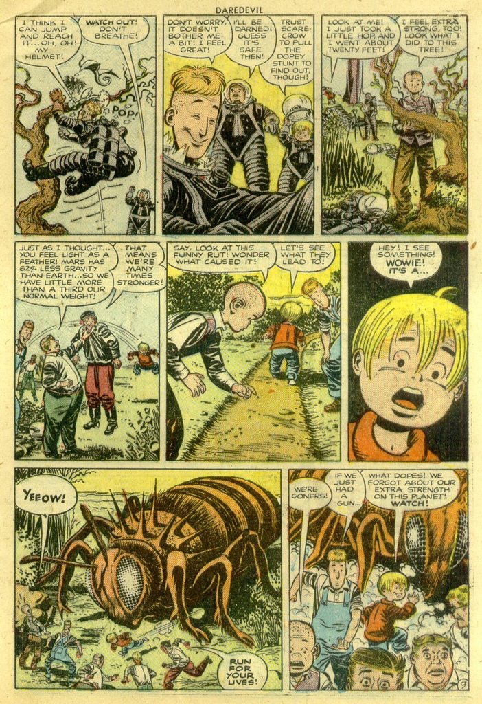 Writer Charles Biro was sort of the quasi-Stan Lee of his day. He would typically directly address his readers on the opening splash page of his stories, and he ran a regular letters page as well to get feedback from them. Artwork for this last Daredevil story is by Hy Mankin, who was likewise permitted to sign his work.