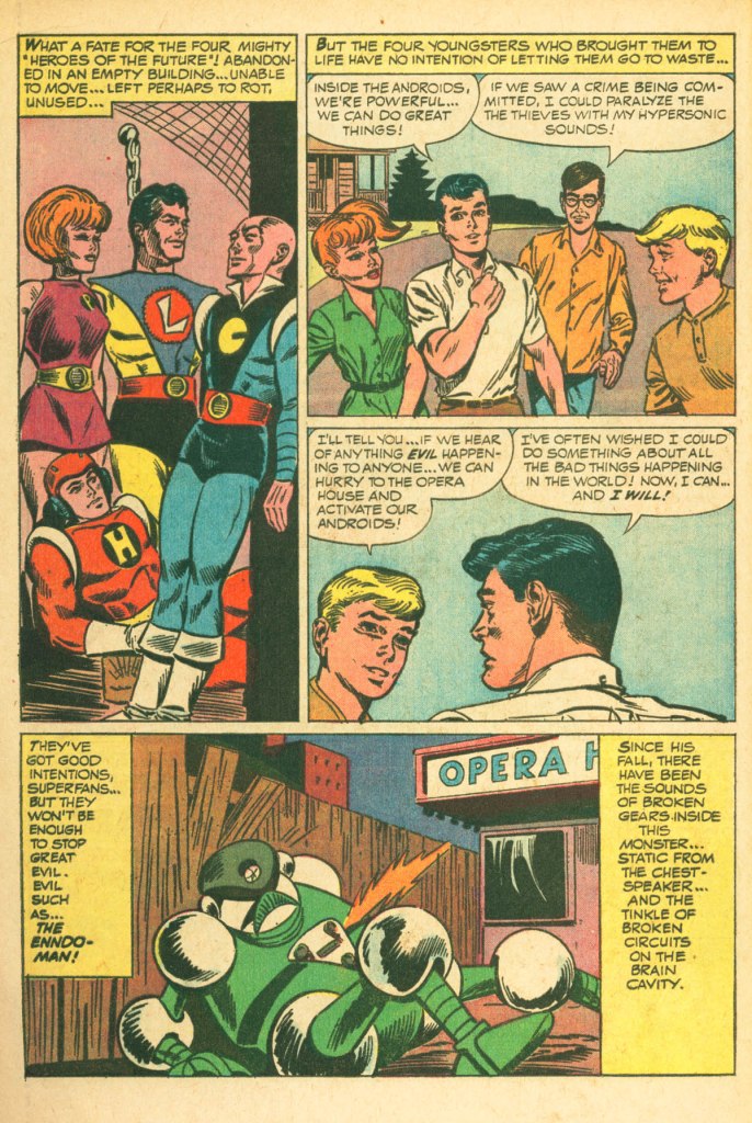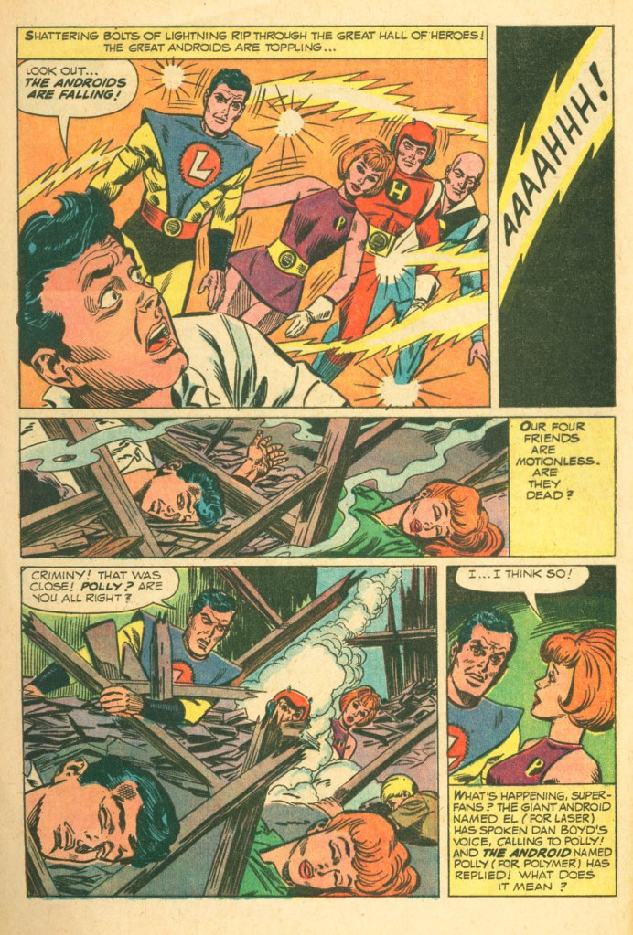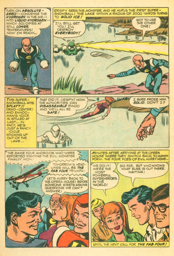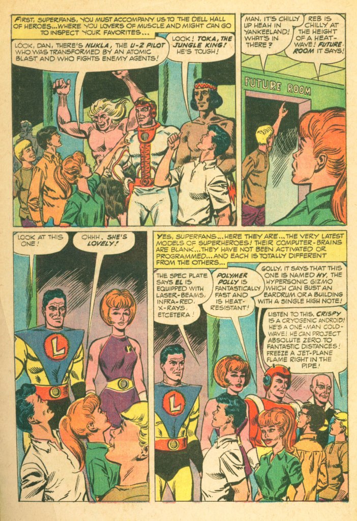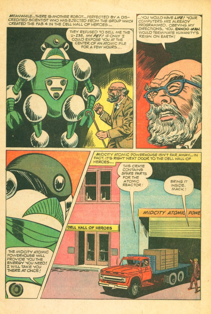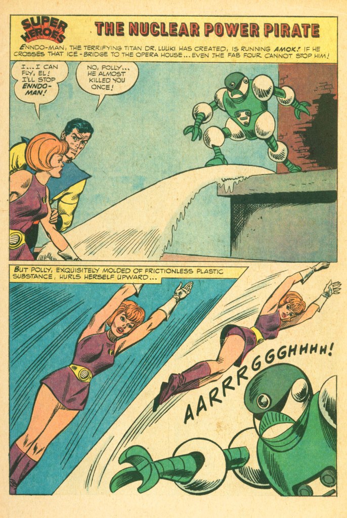 As interest in super heroes became a full-blown fad in the mid-1960s, driven in large part by the premiere of the Batman television series, just about everybody got into the act, trying to capture some portion of that marketplace for themselves. One of the more oddball entries was the Fab 4, who were the headliners in a quartet of mediocre issues of Dell’s unimaginatively named SUPER HEROES.