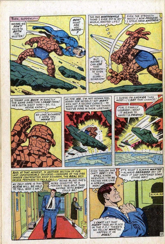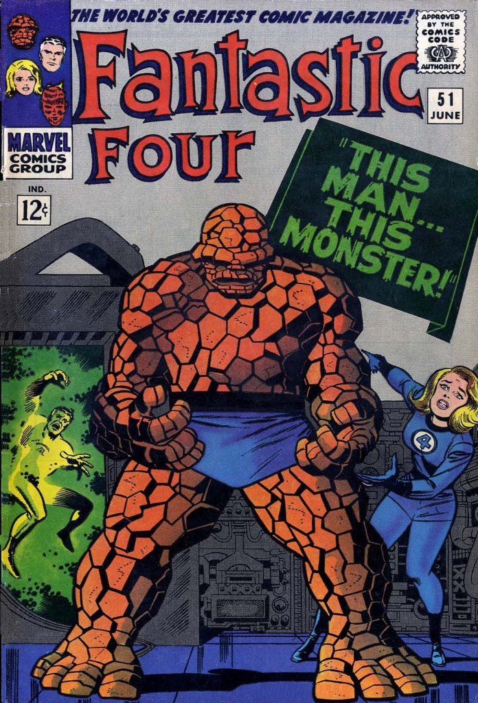 As anybody familiar with this period knows, FANTASTIC FOUR #51 is considered something of a high water mark in the run of the series. Released right after the conclusion of the Galactus trilogy, it tells a simple but effective done-in-one morality tale centering around the Thing and Reed Richards. By this point, long-time FANTASTIC FOUR inker Joe Sinnott was operating very much in synch with Jack Kirby and, combined with Kirby getting a small raise that allowed him the luxury to spend a bit more time on each page and bring in the same amount of money, this meant that the art was reaching a pinnacle of polish as well.