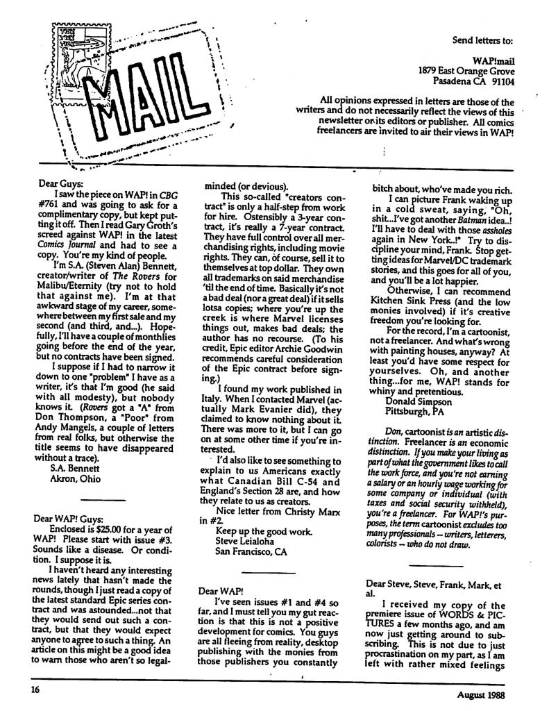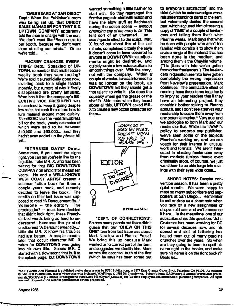WAP – Words and Pictures #5 Tom Brevoort Classic Fanzines December 7, 2019July 3, 2021 The fifth issue of Steven Grant, Steve Gerber and Frank Miller’s freelancer newsletter from 1988 Share this: Click to share on X (Opens in new window) X Click to share on Facebook (Opens in new window) Facebook Click to share on Reddit (Opens in new window) Reddit Click to share on Tumblr (Opens in new window) Tumblr Click to email a link to a friend (Opens in new window) Email Like Loading... Related Published December 7, 2019July 3, 2021