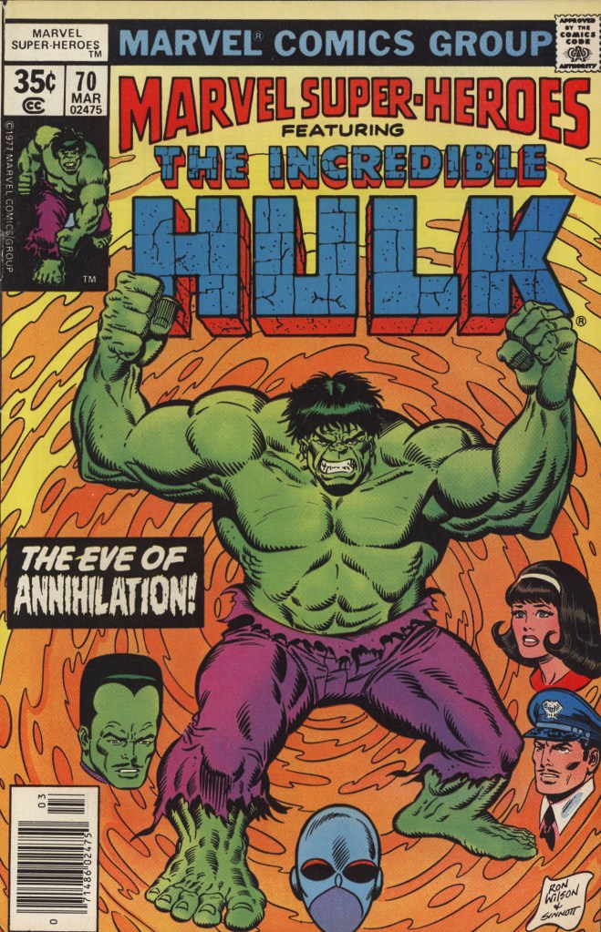 My brother Ken also picked up this issue of MARVEL SUPER-HEROES featuring his Marvel character of choice, the incredible Hulk. As I mentioned yesterday, he liked monsters, and ever since the Hulk TV movies had aired, he had begun to peruse the occasional Hulk comic. I have a vague recollection that I helped egg him into buying this rather than something else, I assume because by this point it had struck me that I’d be able to read it as well.