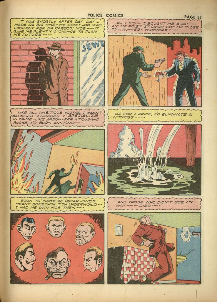 I’m not going to leave you hanging, but neither am I going to post the whole of Destiny’s pursuit of Oscar Jones (since it goes on for multiple issues.) But here are a few salient moments from POLICE COMICS #16