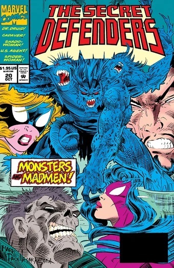 SECRET DEFENDERS was started during the height of the comics boom in the early 90s, and had a pretty simple idea behind it: rather than contrieving a reason why Dr. Strange, the Hulk, Namor and the Silver Surfer would continue to hang out together and fight evil as a unit when they’re all misanthropoes who can’t really stand one another, the set-up would be that, when Strange detected a situation that required handling, he’d assemble a hand-picked team of specialists for the job from around the Marvel Universe. This would allow the writer to bring in both popular characters, fan favorites and obscure guys, while still maintaining an overall spine to the series.