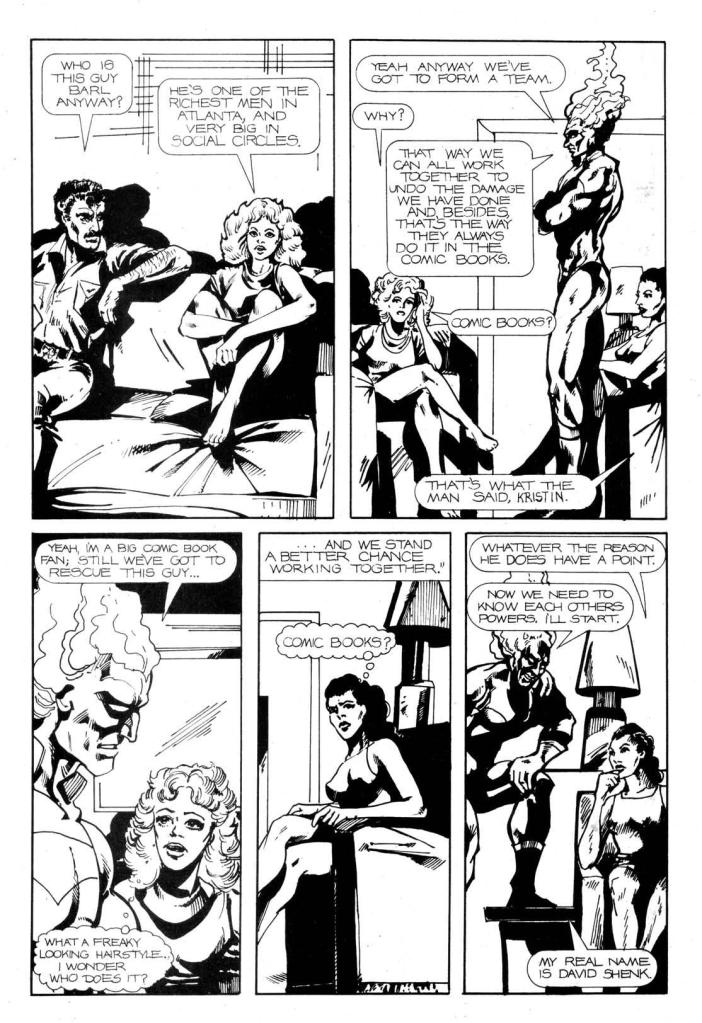The series proved to be prescient about some of the trends that would come to be reflected in super hero comics in the years to come–although that prescience wasn’t immediately apparent, obviously. Of the four members of the Crusaders, only one of them wore a regulation super hero costume. Te others were all attired in stylized civilian garb, an aesthetic which would become widespread across the industry in the years to come. That one costumed member, Electrode, was himself a comic book fan, and he would speak to the tropes of the genre as the characters would encounter them in the kind of manner that Joss Whedon would popularize a decade-and-a-half later. And cast member Connie Ronin’s power was to materialize a psychic sword of the sort that would become standard issue in the X-MEN titles in later years.
