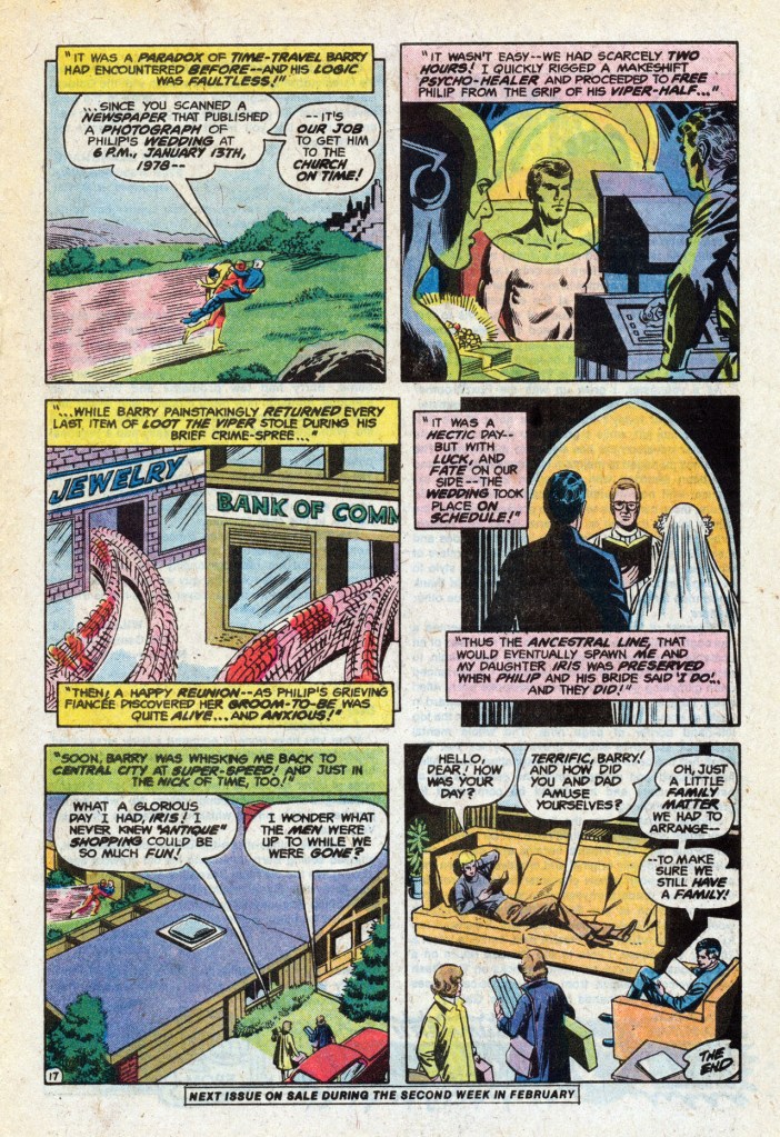 In the space of a page, Eric and the Flash construct the needed device, eliminate Phillip’s psychosis, return all of the loot stolen by his Viper self, reunite him with his fiancee, and get the couple to the church so that the wedding can go off as planned and the bloodline of Eric–and of Iris–can continue on into the 30th Century. And really, that’s about the wrap-up on this issue. It’s a pleasant if inconsequential read.
