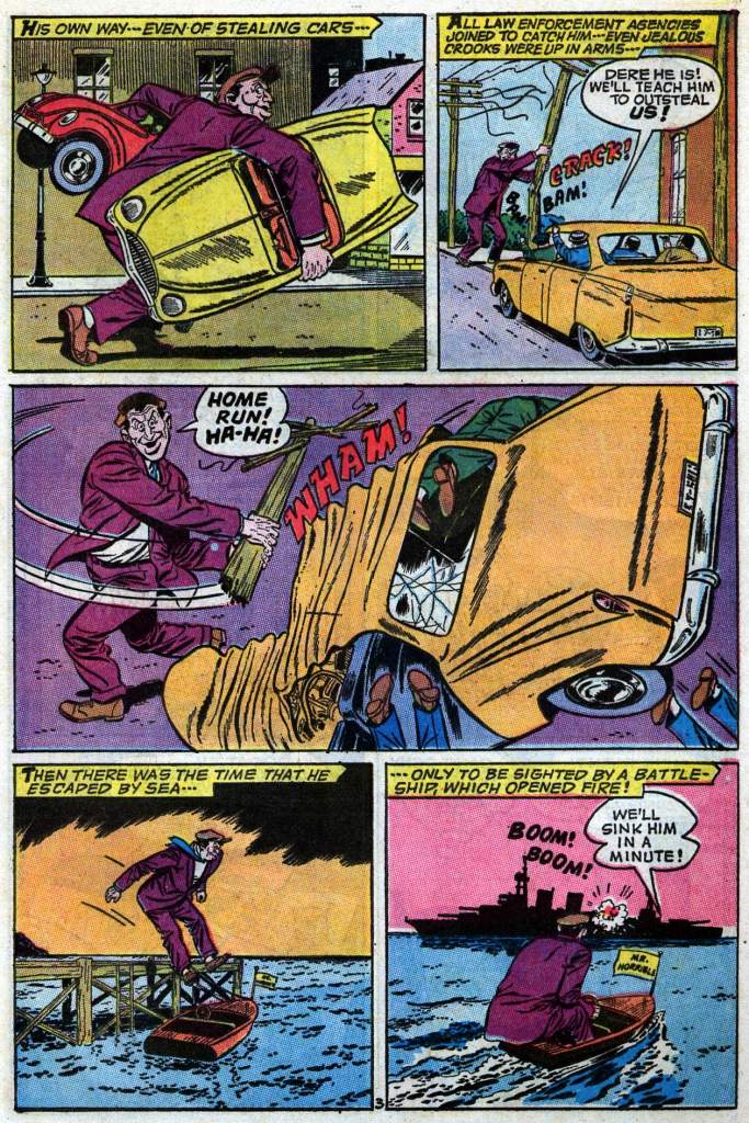 The story here, as with all of the Herbie adventures, was written by ACG’s head editor and writer Richard Hughes, here using one of his regular pseudonyms, Shane O’Shea. Artwork was produced by Ogden Whitney, who worked on the Skyman strip during the Golden Age.