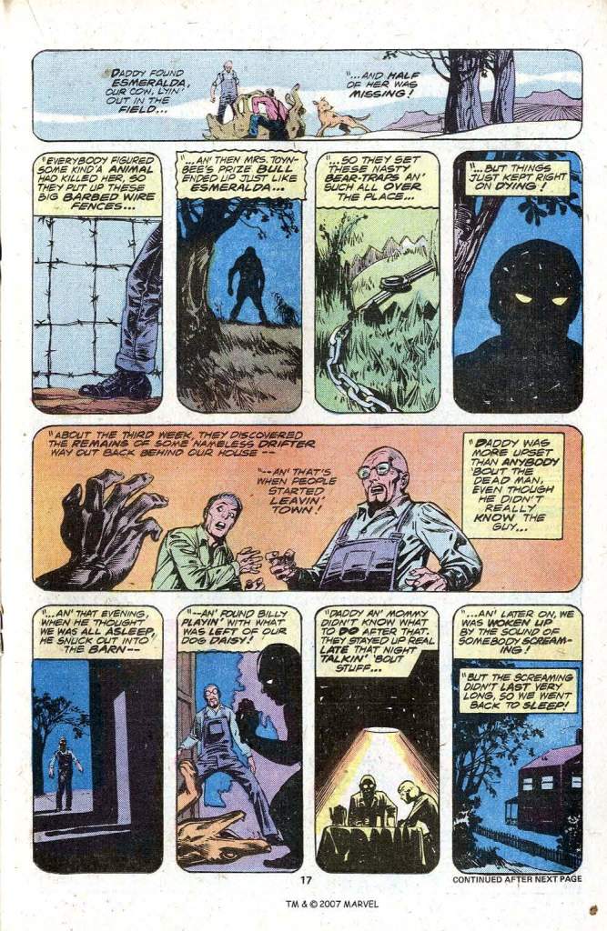 I remember being terribly disappointed with this issue, because Alcala had pretty much buried all of Starlin’s art, and because I didn’t think cannibalism should be portrayed in a mainstream comic book. And yes, I was aware that the Wendigo had appeared in the Hulk almost 5 years earlier, but I hadn’t purchased those issues either.