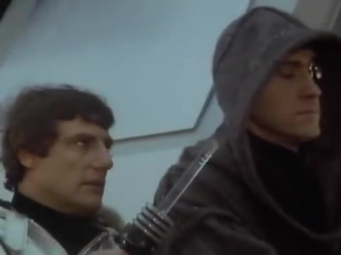 On board the Liberator, Jenna makes a unilateral decision. Even knowing that she’s betraying Blake by doing so, she orders ORAC to use his carrier beam to send a distress call to Servalan and the Federation Security Fleet, telling them about the enemy massing at Star One in the hopes of summoning assistance. But it may be too late for that, as the Andromedans’ equipment is ready, and Travis begins to bring down the defense zone one section at a time. But Blake, though badly wounded, is able to shoot Travis down, keeping him from finishing the job–and when Travis gets up again, Avon finishes him off with a shot that sends him falling into an electrified shaft of some kind in the center of the room. After two series, Travis is done for.