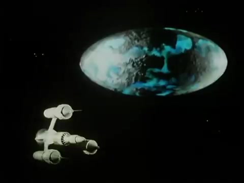 The Liberator plunges into the fluid cloud, and the crew is forced to endure the resulting turbulence. But after the ship passes out the other side, Zen reports that the only damage appears to be that the hull sensors have been rendered inoperative, and the ship’s auto-repair systems are attending to them. But he also warns that minute particles of the fluid are continuing to cling to the hull. Still, the danger appears to be over. A short time later, the Liberator arrives at the designated coordinates, and scanning the area, the crew discovers Terminal, a weird egg-shaped world. Terminal was an artificial planet created 411 years ago as a laboratory to investigate evolution. But it was supposedly destroyed long ago, and wasn’t situated in the area of space where it now resides. Regardless, Zen indicates that the ship is receiving the expected signal from Terminal. Avon asks Tarrant to assemble the others in the teleport room and he’ll tell them what they need to know.