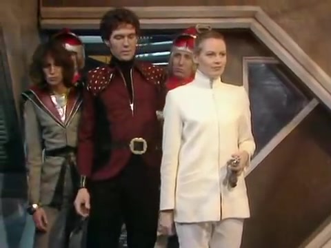 Avon is dragged back out to the hall we just saw him struck down in and given a shot which awakens him. He’s brought in to see the base’s commander, who of course turns out to be Servalan. This whole production is her show. And she makes her pitch to Avon: “You get Blake, and whatever it is he’s discovered. And I get the Liberator.” But she might not want it if she knew what was happening on board. Dayna is finally able to get through to Tarrant and Cally as they make their way through the base, and she tells them that the ship is already crippled beyond repair, and it’s only a matter of time before it disintegrates. On board the flight deck, we get one of the saddest moments in the series, as a decaying Zen tells Vila that he is concentrating all remaining resources into maintaining the teleport system so that they can get off the ship safely. “I…I..have failed you. I have failed you. I am sorry.” It’s the first time Zen ever refers to himself in the first person. And then, his screen goes out permanently.