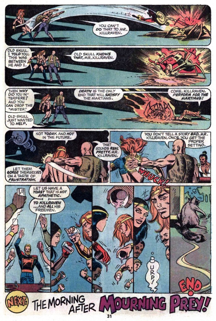 WAR OF THE WORLDS is rightly considered one of the classic series of the 1970s, and yet I’ve never been able to really embrace it emotionally. A year or so back I read the whole series in the space of a few sittings after we reissued it all in a single MARVEL MASTERWORKS volume–and while I could follow the storylines much easier in that manner, I still felt a bit distant from what was going on. And the sheer amount of text was often daunting. All that said, McGregor and Russell’s work was clearly affecting to a lot of people, and has stood the test of time–so the fact that it’ll never be on my lost of favorites is almost irrelevant.