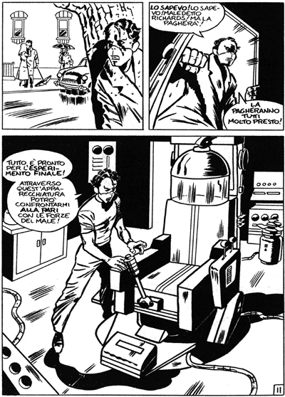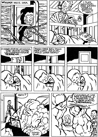 This is the third installment of Italian creator Leonardo Ortolani’s fan-created wrap-up of the FANTASTIC FOUR mythos created by Stan Lee and Jack Kirby. This chapter was published in the fanzine MADE IN USA #9 in 1993. We’re getting to the meat of Leo’s Alan Moore-style reinterpretation of the events of the series here.