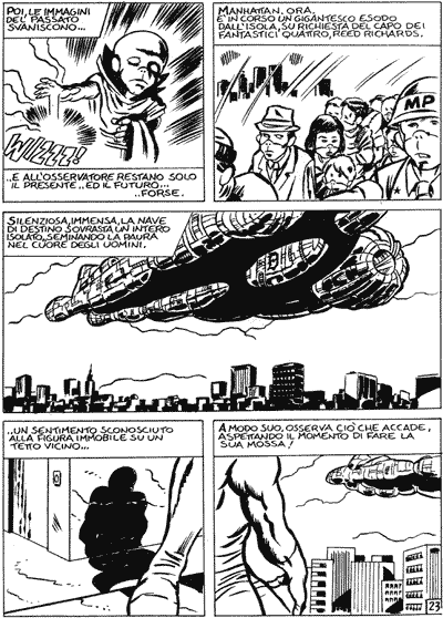 CAPTION: Silent, immense, the ship of Doom hangs over an entire block…sowing fear in the hearts of men.