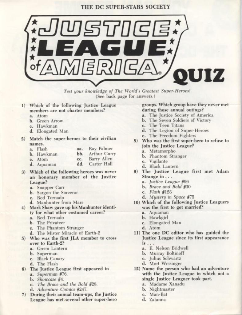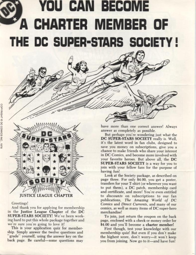 2. I also got the JLA flyer for the DC Super-Stars Society, and I’ve seen the LSH one online. I’d love to see all 12 quizzes.