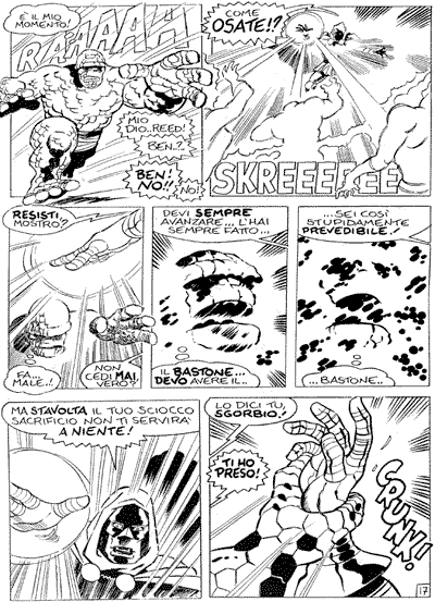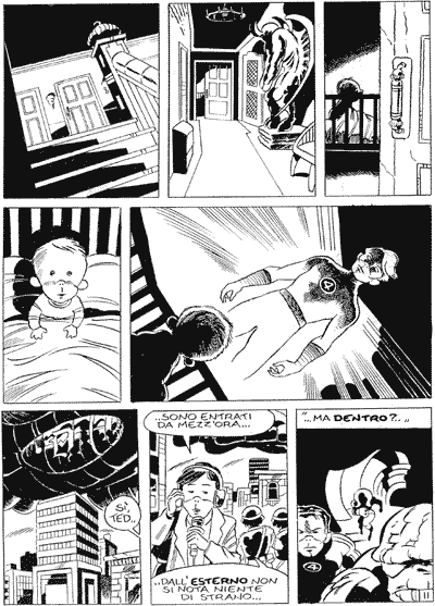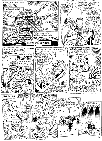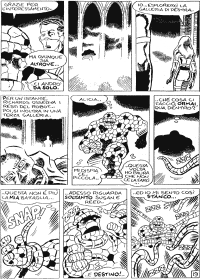 Ortolani’s cover to this final chapter was a play on the cover to the first Italian issue of I FANTASTICI QUATTRO published in 1971, which used a piece of artwork originally created for a T-Shirt. But in this way, Ortolani bookends the entire run with his last cover.