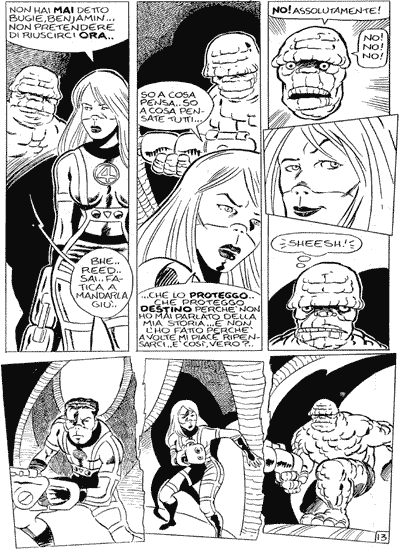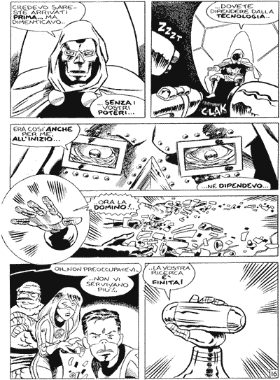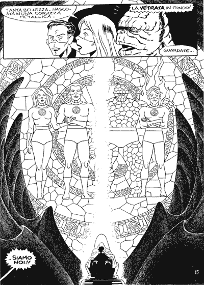 This is the fourth and final installment of the final Fantastic Four story that Italian creator Leonardo Ortolani produced for the tenth issue of the Italian fanzine MADE IN USA in 1994. It was set immediately after the final FF story produced by Stan Lee and Jack Kirby and was intended as a climactic finale to the series as a whole. This final chapter was far longer than the earlier installments, a full 38 pages in length, so I’m going to need to break it in half to run it here–there’ll be a Part Five along shortly with the balance of this last chapter.