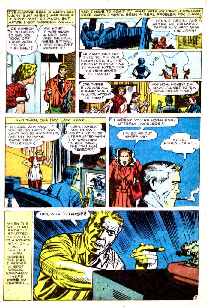 The idea that the opening heads came from elsewhere and were moved to the opening splash page is a good one. Additionally, looking at it closely, those heads may not have been in those circles initially, or arranged horizontally. So there’s a lot of flexibility in terms of where they might have come from. I instinctively want to put them on the opening splash page of the Mole Man back half—where they fit reasonably well. I do think that you may be right that Kirby came in with the whole origin sequence drawn up, possibly in a presentation form along with the character designs, and then Stan and he cut it down for inclusion into the eventual issue.