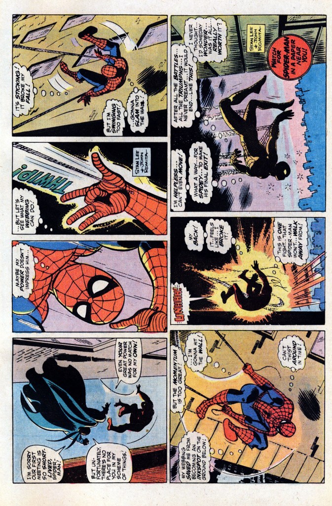 So when were these strips produced? Based on the telltale clue of Mary Jane’s short-lived perm hairstyle, I’d have to guess 1968 or so–at around the same time that Marvel was expanding its output and dipping a tentative toe into the waters of magazine publishing with the black and white SPECTACULAR SPIDER-MAN magazine. The villain here, though he’s not seen terribly clearly, appears to be the same one that John intended to use in the never-completed third issue of that magazine, and whom he eventually reworked (along with some input from his son John Jr.) into the Prowler.