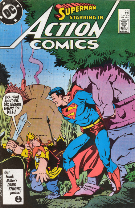 UNNAMED GAUL. ACTION COMICS #579 – With his time on ACTION COMICS winding down as John Byrne’s reboot of the Superman line was waiting in the wings, editor Julie Schwartz allowed all sorts of crazy stories to see print, secure in the knowledge that it was all going to be wiped from continuity any day thereafter. And so came this issue of ACTION COMICS, in which a temporal accident sends Superman and his cast back to 253 AD, where they help the denizens of a hidden village escape the Romans. It’s all a magnificent homage to the great European strip ASTERIX THE GAUL, though set just a bit after the time of the adventures showcased by Rene Goscinny and Albert Uderzo so as to avoid anything too litigious. Asterix himself doesn’t really appear except on the cover, and even there he’s changed just enough to squeak by. But for an Asterix fan, it’s a story that’s chock-full of Easter Eggs, and artist Keith Giffen channels the art style of the series just enough to pull it all off. Jean-Marc and Randy Lofficier were the writers behind this one.