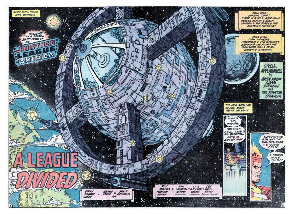 This was the era of what is now looked back upon as the “Satellite League”, which is to say the version that I first came into contact with, and the one that I still like best. Writer Gerry Conway had been on the book for a solid fifty issues at this point, and while his run had its ups and downs, its good issues and weak issues, he was certainly comfortable and in control of his material. He created a nice synthesis between the kind of characterization and higher stakes that Marvel had made their hallmark with the sort of tight plotting that the traditionalists at DC preferred to Marvel’s approach of building most stories around fight scenes rather than plot elements. For JLA #200, Conway set out to celebrate the entire run of the series. And he did so both by going back to the very beginning, and by pulling off a pretty incredible magic trick of casting.