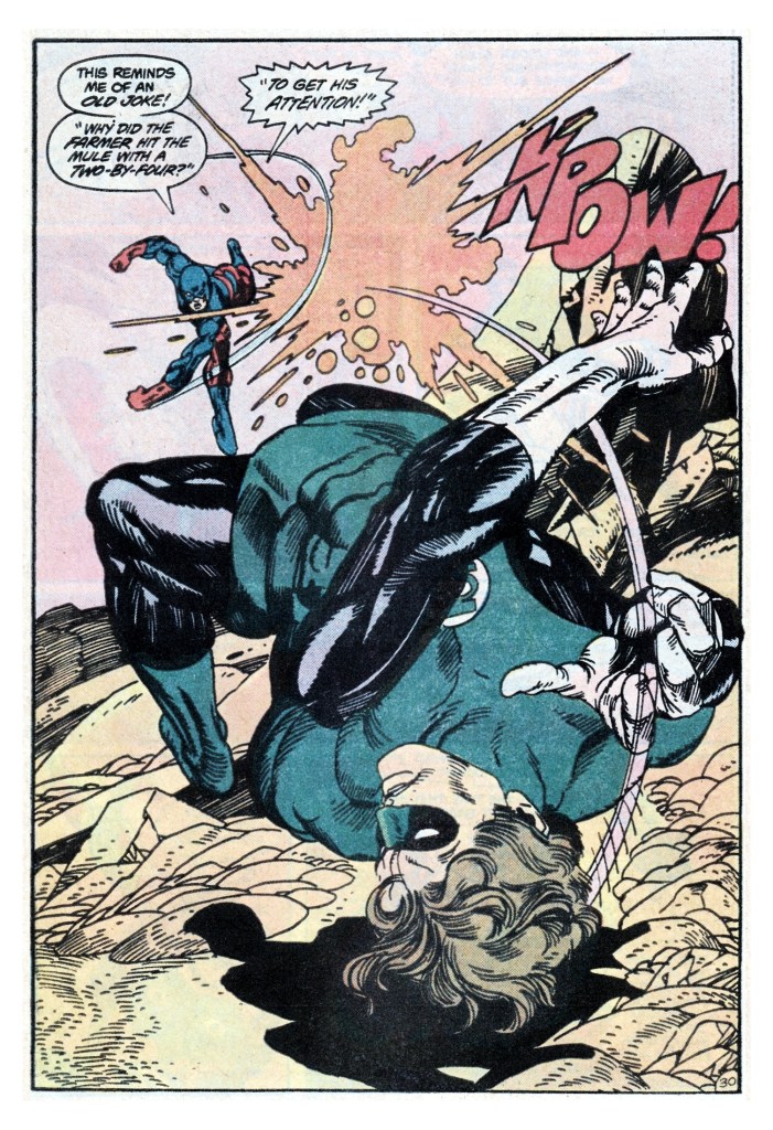 It’s one of the best examples of the “heroes fights other heroes” schtick, and one of my favorite milestone issues of all time. I don’t know why this issue isn’t a bigger deal or more well known. It’s just epic.