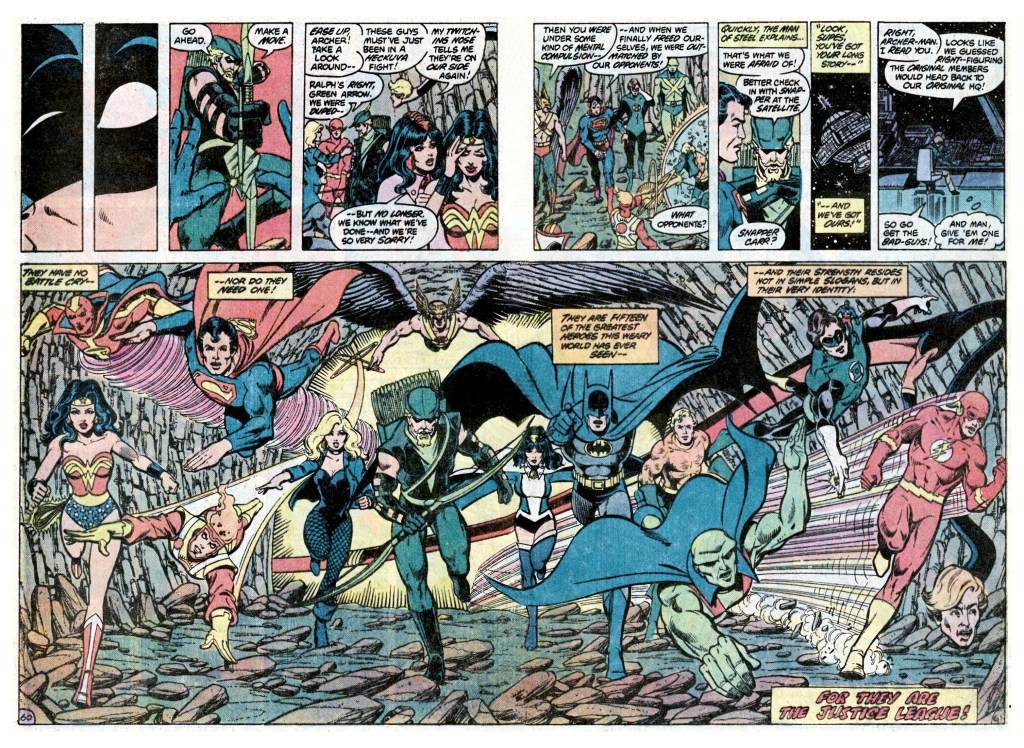 Even though I didn’t know at the time who all of the artists were, the different styles added to the experience. Now with decades of comic writing, I’m amazed at the who’s who of top artists in this issue: Perez, Infantino, Giordano, Joe Kubert, Aparo, Gil Kane, Bolland, etc. I’m not sure there’s another assemblage of talent for one issue that’s this extensive or effective.