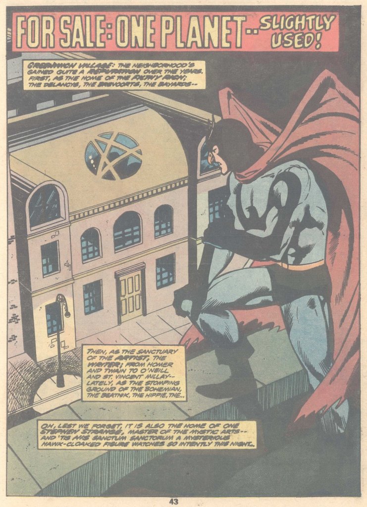 Len is also aware, of course, that the Squadron Sinister were derived from DC’s Justice League of America, but he plays things here absolutely straight, never once making even a veiled reference to the criminals’ counterparts. As such, he begins to make them characters in and of themselves regardless of their origins, and this helps to give them a lifespan beyond just that one joke. In particular, Nighthawk goes from being just a poor man’s Batman (60s variety) to a distinct character as time goes on. Here, he’s the hero, destroying the Squadron’s laser weapon and sustaining life-threatening injuries. Dr Strange is able to heal Nighthawk with a transfusion of life force from the other Defenders–and it’s this as much as anything else that invites him into the club and makes him a regular in the series.