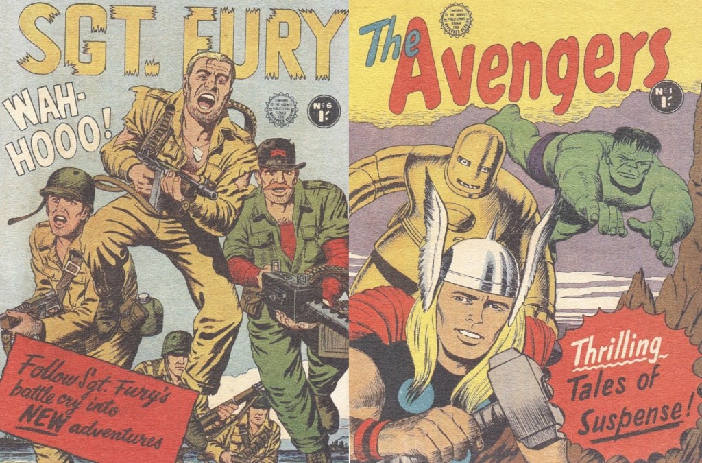 Here’s a pair of home-grown covers for the first issues of SGT FURY and AVENGERS as published in Australia, I believe. No idea who the artist was, but he’s taking his cues from interior panels by Jack Kirby.