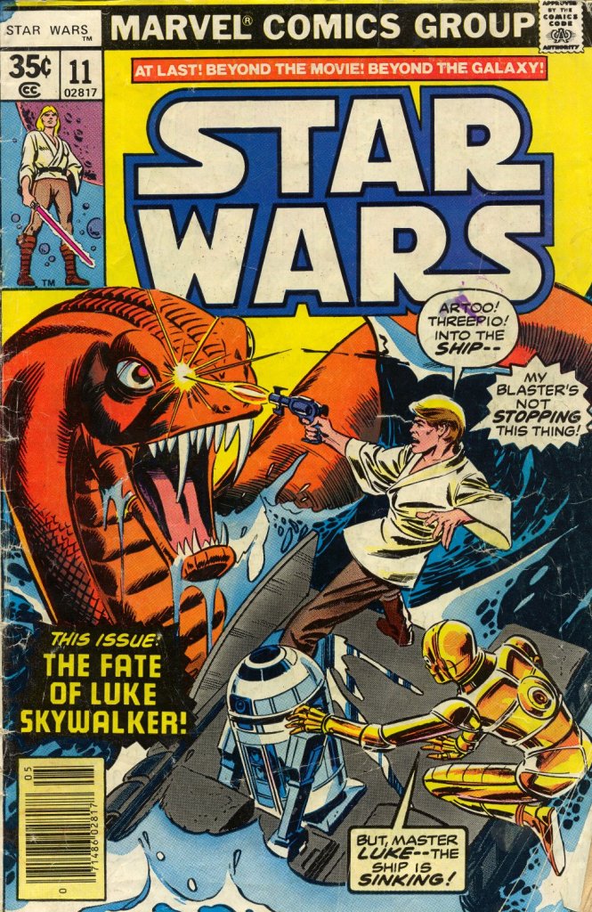 At the same time that my Uncle Jerry and Aunt Clem bought me the Flash Dollar Comic, they also brought a comic book for my younger brother Ken–this issue of STAR WARS. And like with my book, my Aunt dutifully wrote Ken’s name on the cover, so that the world would forever after know that it had belonged to him. Despite that, it’s been in my collection for close to 40 years now, so I feel that I can confidently claim ownership of it,despite that inked name on the cover.
