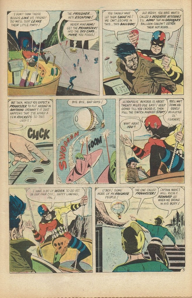Set in the pristine future city of Ultrapolis, The Prankster concerns the criminal activities of a singular freedom fighter dressed in a jester’s outfit-cum-super hero costume who wages war with the totalitarian regime which has outlawed creativity in all its forms. The Prankster, then, is a classic trickster figure.