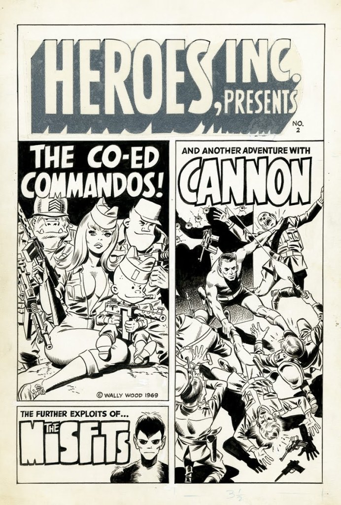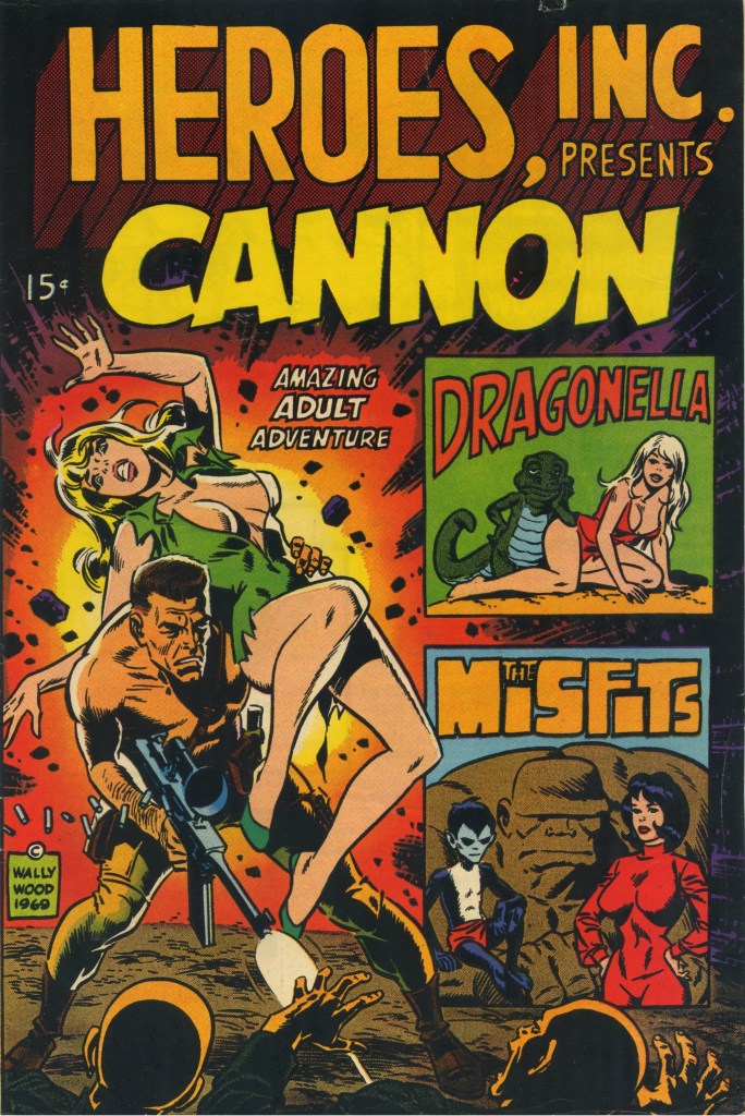 The specific details of how the book was decided upon and why it ultimately failed have been largely shrouded in mystery. All I can tell you is that Wood and his studio produced one issue of HEROES INC. intending to distribute it as described above, but for some reason the deal appears to have fallen through, as what must have been virtually the entire print run was warehoused and eventually sold off to the growing collector’s market over a period of decades. (Heritage, in fact, auctioned off a lot of 70,000 unopened copies in 2005 for $5,500: https://comics.ha.com/itm/silver-age-1956-1969-/superhero/heroes-inc-presents-cannon-nn-group-wally-wood-1969-initially-intended-to-be-sold-in-army-px-s-the-first-issue-of-th-70000-comic-books-/a/15102-17165.s )