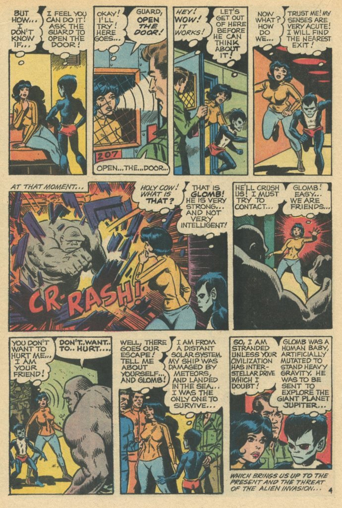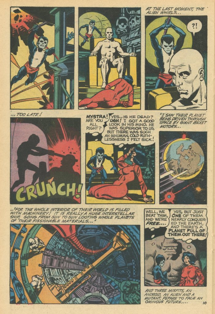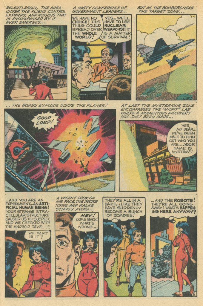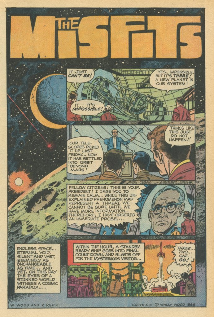 But it’s the middle story that we’re looking at here. This was The Misfits, a quasi-super hero story about a trio of characters with superhuman abilities who find themselves battling an alien invasion. Wood worked this story up with Ralph Reese, one of his assistants, and while both men are credited on the splash page, it’s impossible to tell who might have done exactly what on the story.