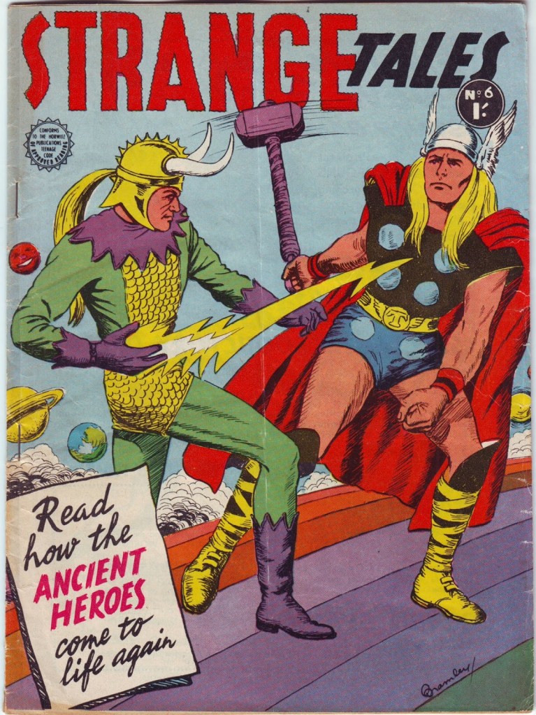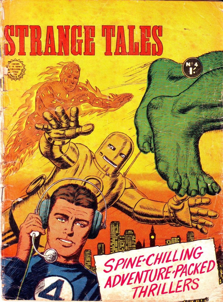 Let’s begin with another Australian edition of STRANGE TALES, one on which a local artist gave us his interpretations of a number of figures from within the story. Based on what we see here, I’m guessing that this issue reprints AVENGERS #1 in whole or in part. Look at how hairy the Hulk’s feet have gotten!