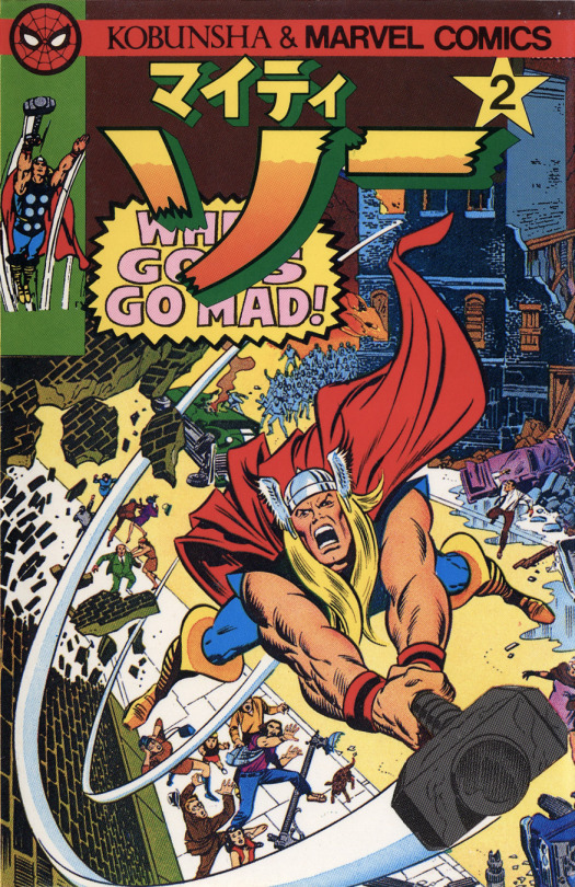 There was an attempt to publish the Marvel characters in Japan in the very early 1970s but it failed utterly–the style of storytelling was simply too alien to readers who had grown up with more cinematic manga approaches to comics. I do love the fact that Kobunsha didn’t bother to take out the English blurb, they simply pasted their logo right over it.