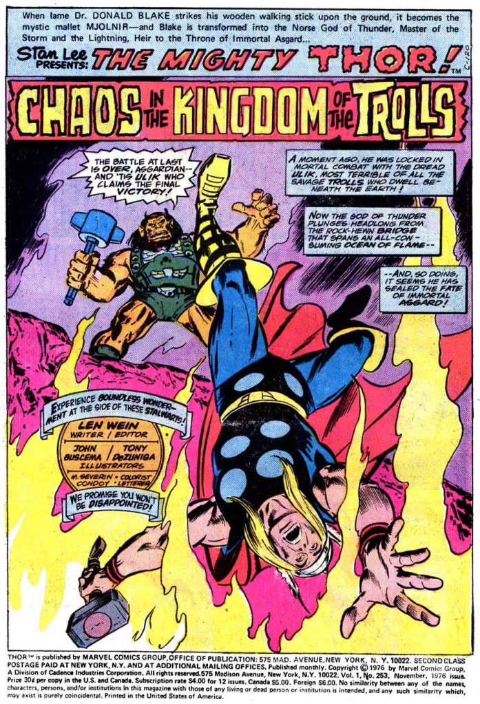 There was another Ulik story later, in the 80s, also drawn by Big JB, that I liked even more. Mephisto captures Ulik’s little brother. And Thor tries to rescue him. Even a troll’s life had value, Thor declared. I liked it. Sad ending, though. Not sure if it was Thomas, or Simonson, maybe Alan Zelenetz or even Lesley (Priest). But it worked.