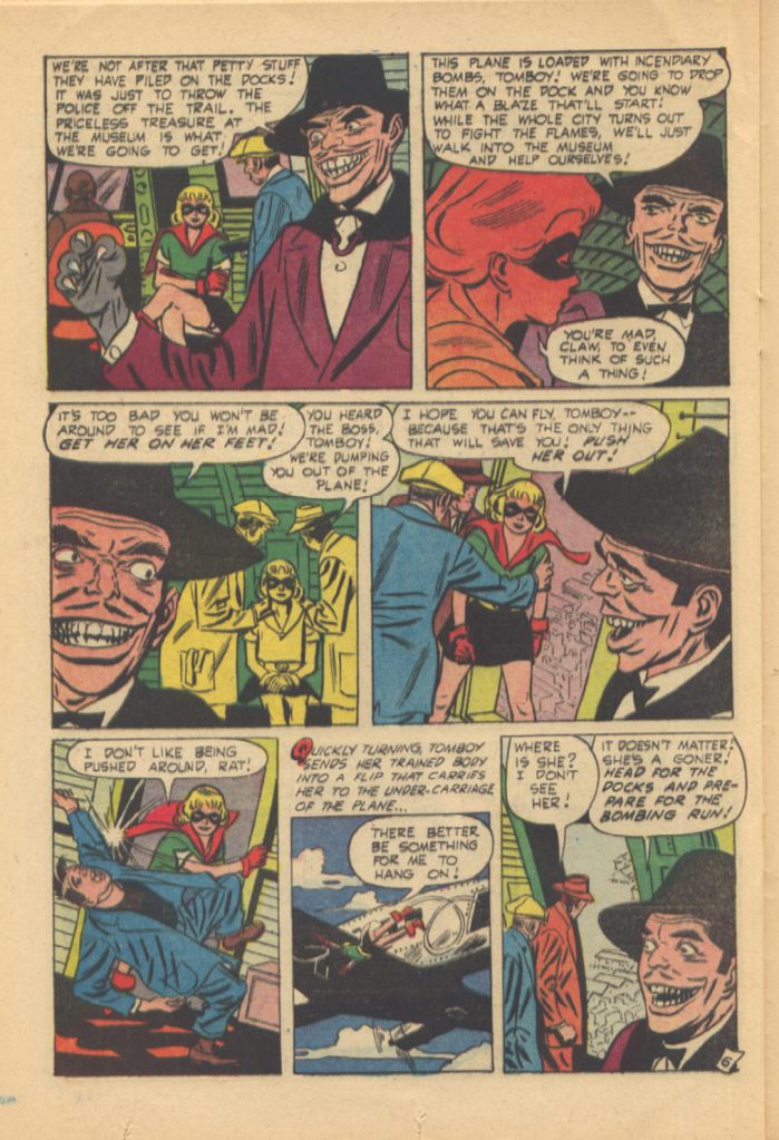 It’s also a bit noteworthy that whoever the writer was, they scripted Tomboy no different from any other male super hero. Her gender was seldom brought up as an issue, and she could throw a punch–or take one–just as well as any of her male counterparts. Especially once the Comics Code came in (the later issues of CAPTAIN FLASH carried the Code stamp) this was far away from the norm. Tomboy kicks ass.