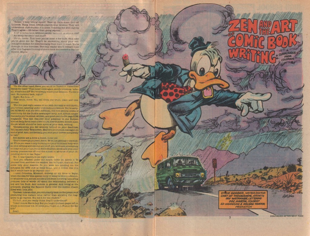 HOWARD THE DUCK #16 – We’ve spoken before about how much of an individualist and an iconoclast writer Steve Gerber was. This story is a good example of how his mind worked–literally. It came about because Gerber and his creative team was late on getting HOWARD THE DUCK completed. Rather than slot in an emergency fill-in as was usually done in these instances, Gerber took it upon himself to draft in a bevy of his artist friends to each turn around a double-page illustration in jig time, and he then proceeded to write a long stream-of-consciousness autobiographical essay that ran in tiny type across all of the pages. It does seem on the one hand that the time Gerber used for this essay could have been used instead to write the needed issue of HOWARD, but that wouldn’t have gotten Gene Colan’s artwork done any sooner. It’s a bravura performance from Gerber, and probably more memorable than an ordinary issue would have been–and far more welcome than a reprint, especially this early into the run. It also features the first appearances of characters who would go on to inspire Gerber’s later Vertigo series NEVADA thirty-or-so years later. And it likely wouldn’t have worked in any other book; Gerber and Howard were synonymous in the minds of much of the title’s readership. Artistic contributors to this issue included Alan Weiss, Ed Hannigan, Marie Severin, Dave Cockrum, Tom Palmer, Al Milgrom, John Buscema, Dick Giordano and Mike Nasser
