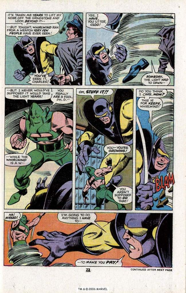 The Superman Newspaper Strip comment from the Beast was rather cryptic, but as a kid I also remember being unfamiliar with the song Whirlwind sings at one point in his chauffeur guise. It wasn’t until 40 years laterāafter viewing Lerner and Loewe’s Paint Your Wagon on TV in the interimāthat I re-read #139 in the Marvel Masterworks edition and finally got the joke. Gotta love that Englehart.