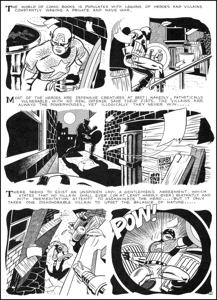 That’s a pretty Gene Colan looking Daredevil, too. (as the neon sign for soda in the background indicates–Caslor wasn’t hiding his influences, far from is.) Poor Aquaman and the X-Men don’t even rate any panel time.