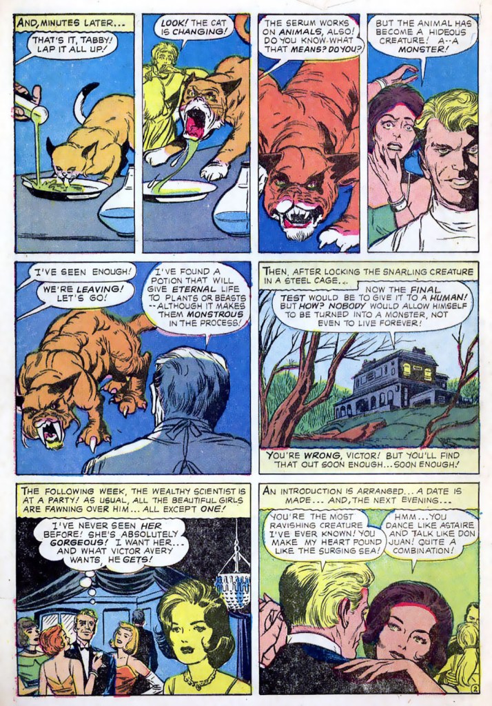 It’s a fairly typical story of its type, wholly unremarkable apart from its tenuous connection to the more famous super hero series. The lead character, Victor Avery, is egotistical and awful–more villain than hero. And he’s not a victim of his own genius–he subjects himself to the serum which turns him into the Midnight Monster deliberately, willingly.