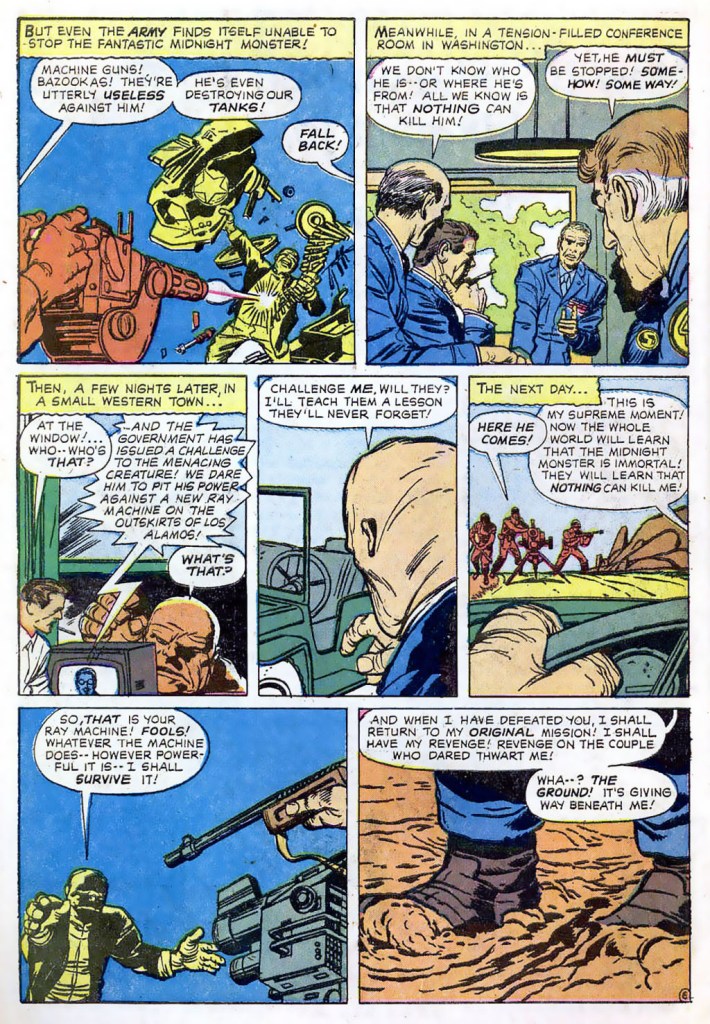 The combination here of the fake weapon and the challenge broadcast to the enemy were both tropes that would be turned to several times in early Marvel stories, including those featuring the Hulk. It’s somewhat astonishing that no later writer ever brought the Midnight Monster back again–though that speaks to how obscure and under the radar this story really was.