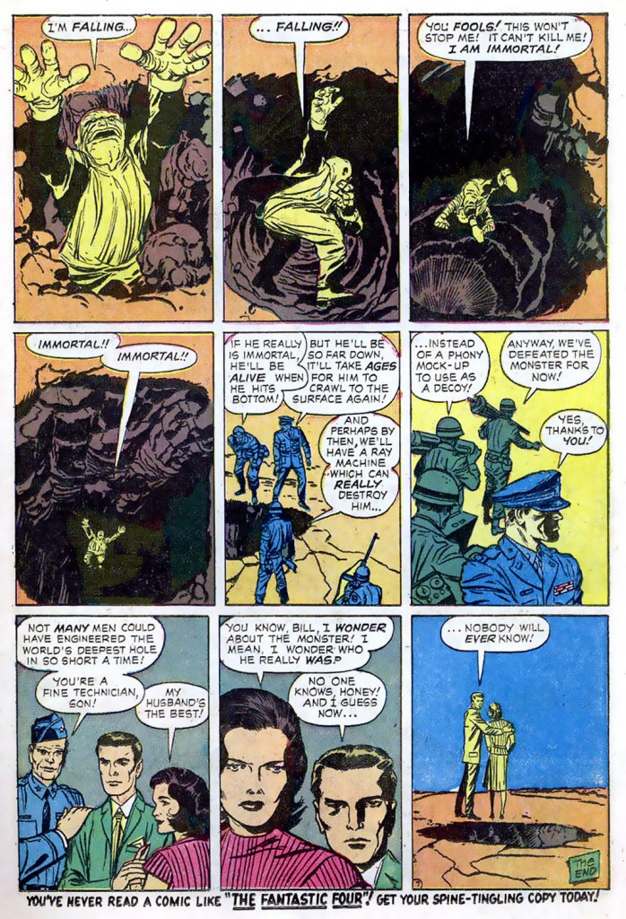 Good find. Lee often gave the plot and writing duties to his brother in the early books as I remember too, so it could be Lee’s or Larry’s work (though no names having the same letter to begin the first and last, suggests it was more likely Larry), but I can see how Lee would have changed this to something more in keeping with the super hero genre they were creating at the time, and using radiation as a means to give people their powers – all of the those early hero books had powers involving radiation of some kind, which seems very much like a Lee thing. Kirby originally wanted Spider-Man to get his powers from a magic ring for example, but when Lee collaborated with Ditko, it was a radioactive spider. Just like with Ditko’s Aunt May and Uncle Ben, artists would often borrow from something they’d done before (Kane’s Abomination was very much like something he’d done at DC IIRC) – Kirby also borrowed from stuff he’d done before, so just like with the FF, reiterated similar aspects to go along with the story he was given. It was simpler and easier to do that, especially as no one then knew how successful these books were going to become, and the artwork had to be done quickly, so there was no point in reinventing the wheel so to speak. I think quite a few examples of earlier versions that ended up being tweaked into hero books, and as you pointed out before, those books are often valued higher as the ‘prototype’ for the character that was to become popular in the hero books.