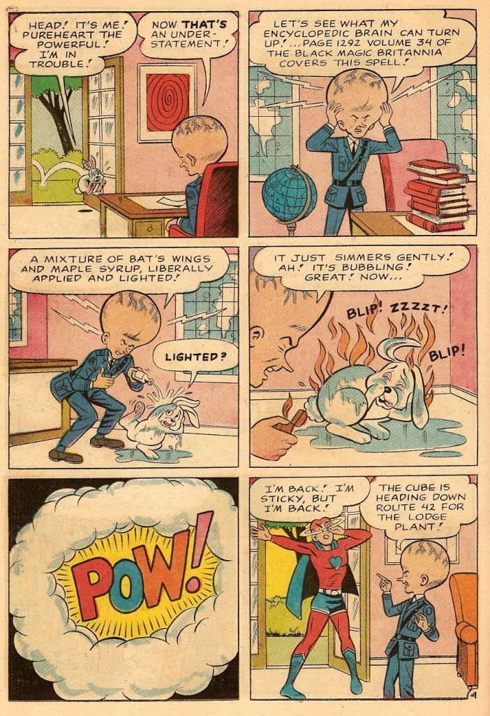 As the super hero boom of the 1960s began to reach its fever pitch, even those publishers who eschewed costumed crime-fighters as a rule began to dip their toe into the masked avenger pond. So it was that even Archie Comics attempted to produce a sub-line of stories featuring the red-headed kid next door as a bona fide super hero, Pureheart the Powerful.