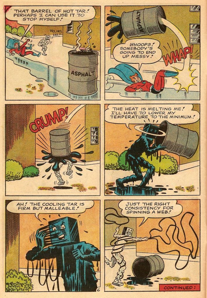 But all things must come to an end, and my sense is that the sales on the Archie super hero books weren’t all that great–they sold pretty much as well as any other issues of ARCHIE did. So as the fad began to cool in 1967, Pureheart and his fellow crime-busters were phased out. There were better times ahead for Archie anyway: his animated series in 1969 would propel his book to the top of the sales charts (to say nothing of the success of the bubblegum song “Sugar, Sugar”)